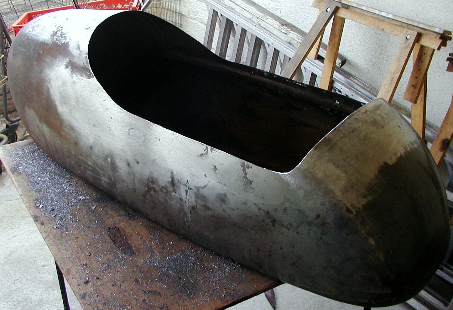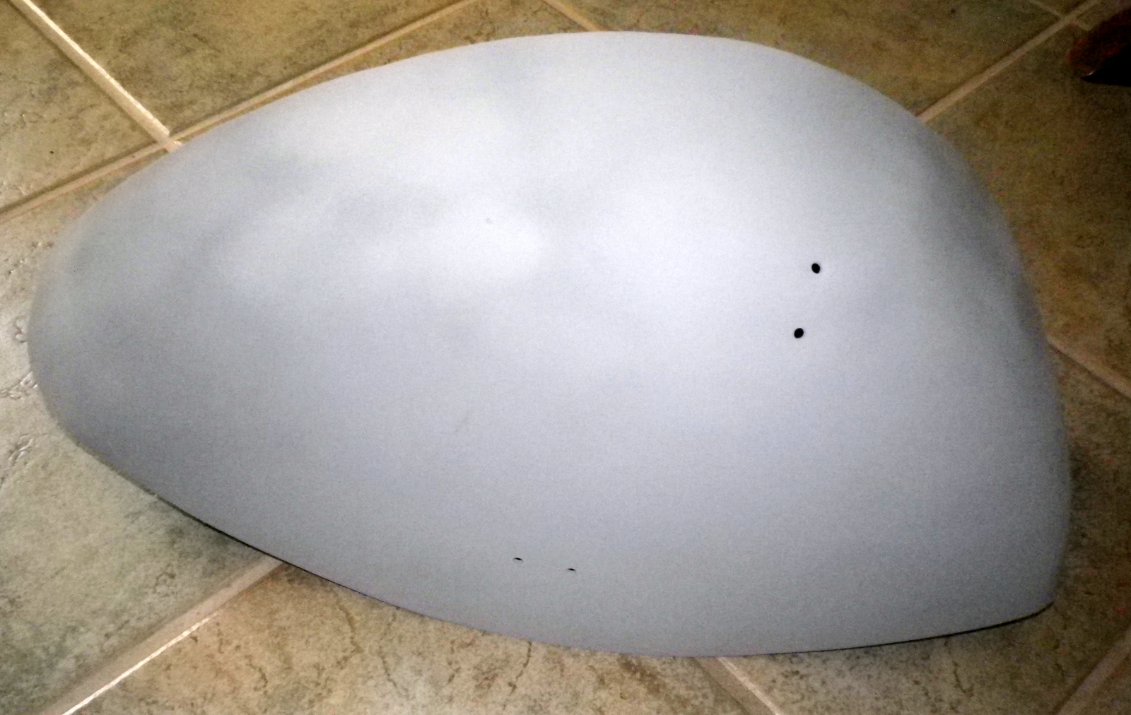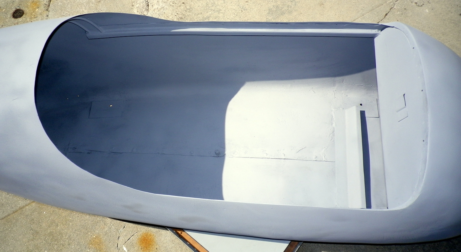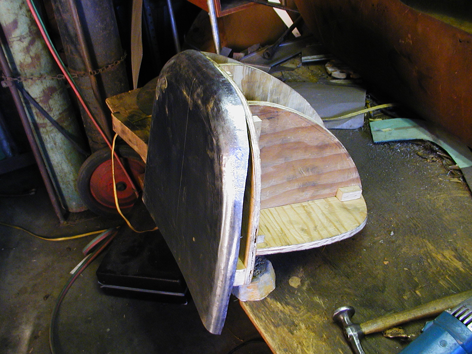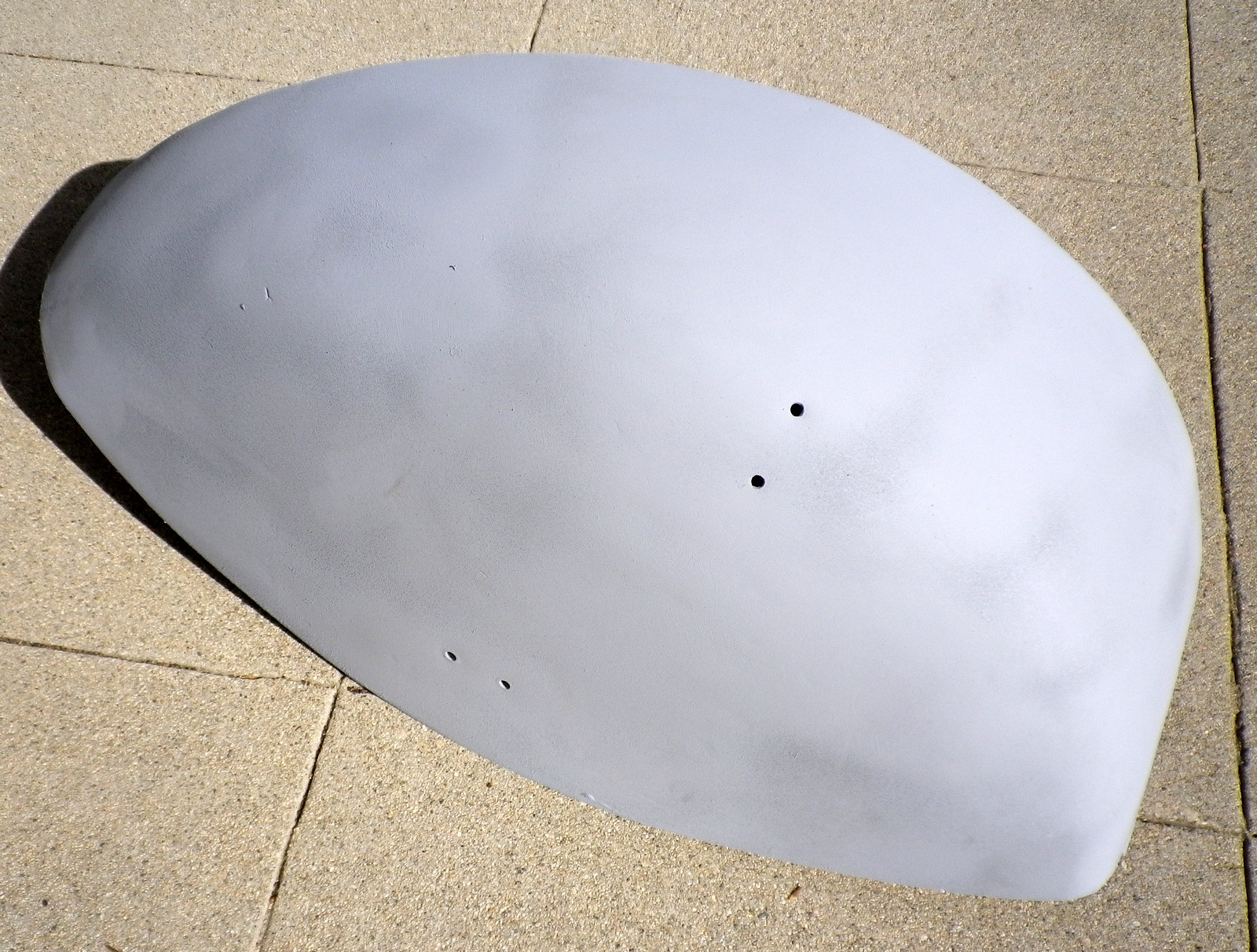 January 26 update from Tim: "I did not put a lot of time on the sidecar this week, but it is coming together nicely. I trimmed the new pieces that I made and skip welded them on. Still have to do a solid weld and then hammer them out smooth, then the tail end will be finished, Then on to other smaller parts of the body." February 1, 2018 - approximately 90% complete! Great work by Tim! After many years of waiting for the sidecar, the end is in sight! Next stop - rust removal by L&M Stripping! As delivered on February 22 to L & M Stripping with its fender: After chemical de-rusting by L & M Stripping on February 27; then picked up by Tim Todd: The fender - after more work by Tim. Ready to be primed on March 29! The fender after one coat of Rust-Oleum auto primer, April 7 April 28, 2018, from Tim: "Have been working hard on the sidecar. I finished up the welding on the tail end and the floor. The floor is giving me a lot of problems. Can't get it very smooth. Trying to blend the new metal with the old is giving me a huge headache. I leaded over the rust holes on the left side and have it mostly filed out. I still have to add the extra support metal for the body bolt holes and a piece on the floor for the seat. Having a lot of trouble smoothing the body out. The old metal must have hardened with age and acid washing. Next week when I get all the parts attached, I will bring it over to you to look at and you can tell me how far you want me to go to try and smooth it out." The sidecar was delivered by Tim Todd on May 8, 2018; ready for priming and painting: In Burbank, May 8, 2018 May 10-12, 2018 - The sidecar interior was treated with "Fast-Etch" to prepare for prime coats. The first light prime coat went on the interior on May 12. Also, the sidecar axle threads were repaired by expert restorer and friend Jerry Miscevich. The new Timken bearings that came with the sidecar wheel (from Dan or Lake Havasu?) are not compatible with the partially threaded 3/4"axle. Bearing cups/races Timken #09195 have been pressed into the wheel, but replacements are needed for cones/bearings #09076 to fit the axle - to be purchased soon! Matching automotive color coat paint will also be acquired - red, of course! May 13, 2018 - Rust-Oleum automotive primer was used for the first prime coat; all of the interior and exterior is done except the bottom: