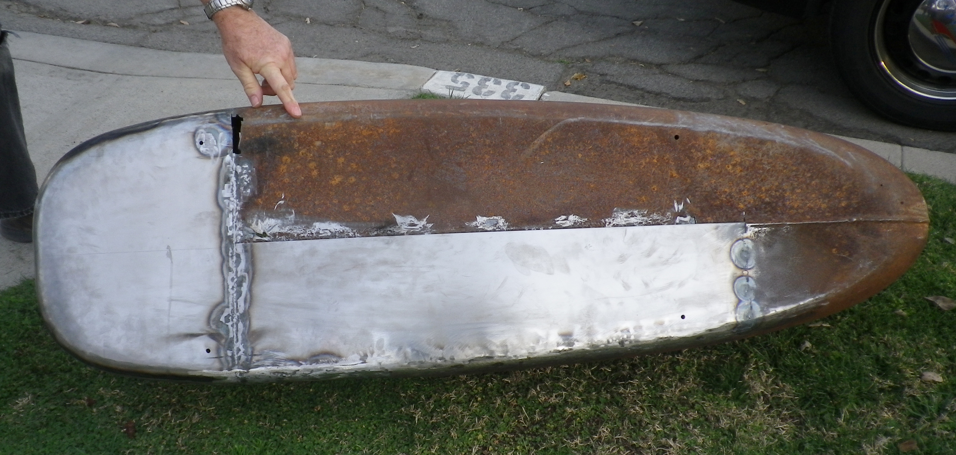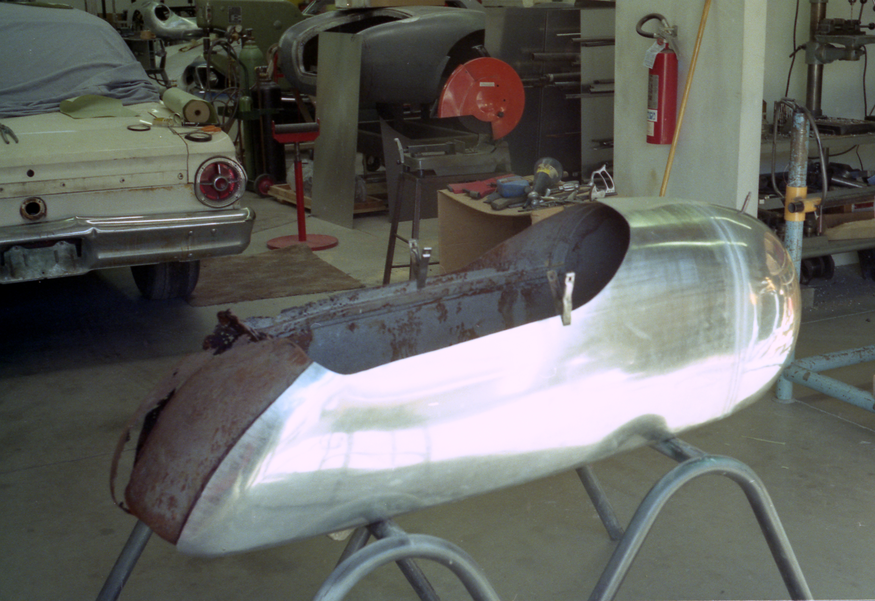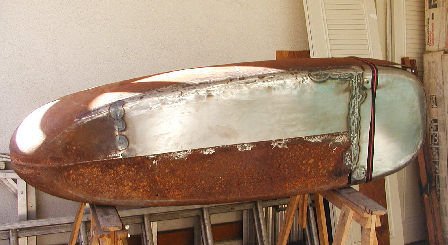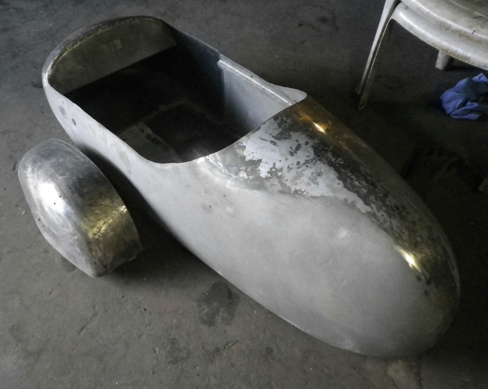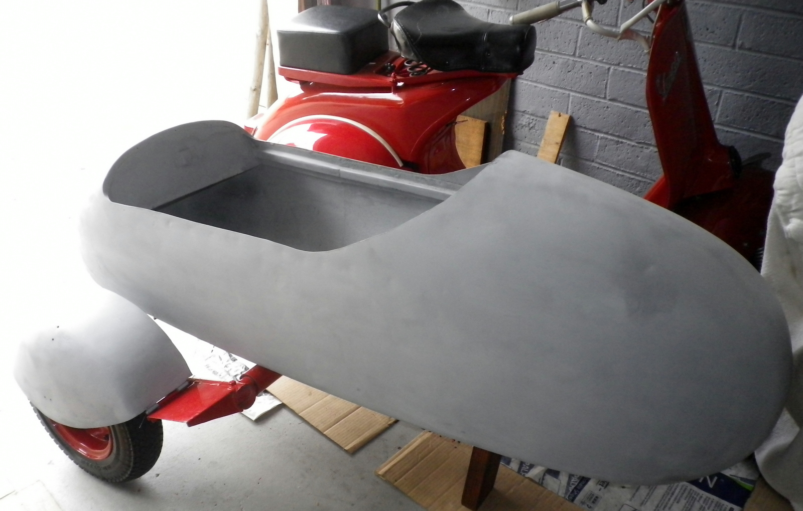 A Tale of Two Vespa Sidecars: An Allstate Cruisaire sidecar and an Aluminum Replica May 1, 1958 - April 15, 2020 May 30, 2019: 61 years after first driving the Vespa and sidecar in Chicago, it passed a test drive on our local Burbank streets. We later toasted with Proseco! A few weeks later, Shannon became the first sidecar passenger since 1960! The above photos were taken in Chicago, about 1959. Bob is on the Vespa, with a wooden delivery box on the sidecar chassis. The location is our all concrete "backyard" behind the family apartment at 4606 N. Kedzie Avenue. No early photos of the metal "Allstate Cruisaire" sidecar body with the Vespa! I bought the Vespa from the Manor News Agency on May 1, 1958 specifically to deliver newspapers. I had started delivering 50 copies of the Chicago Daily News about four years earlier on my bike with a single afternoon route on Wilson and Eastwood avenues, but planned to shift to morning deliveries before starting high school. Illinois had recently changed a law to allow scooters under 5 hp to be driven at age 14, so a few weeks after purchase, I add two routes of the Chicago Tribune and Sun-Times in the (very) early morning. The Vespa allowed me to deliver "tons" of newspapers before I moved on to another job. The sidecar was made from steel and had an Allstate identity plate I later learned it's an "Allstate Cruisaire Companion". The Vespa stayed in Chicago until 1996, first in the garage adjoining our backyard on Kedzie Ave. and later at my brother Dan's house on Kilpatrick Ave. Sometimes inside, sometimes outside. The sidecar body and frame at Dan's house on Kilpatrick Ave, Chicago, in 1991 The Vespa and both sidecars were originally light green, as bought May 1, 1958. After a few years, I painted the Allstate sidecar and the Vespa red, but the seat cushions in the sidecar remained dark green. The Illinois Vespa title shows serial number "VLIM 60834, but this doesn't match any of the factory listed numbers, so a correction was expected. Dan brought the Vespa to Arizona, then to California from Chicago in August, 1996. I met Dan in Lake Havasu AZ at Bruce and Colin Kimmins' shop. Because the Allstate sidecar had been left outside in Chicago for many years, it was very rusty. Bruce decided to build an aluminum replica body rather than work on the rusty steel. Within a few days, Bruce had fabricated half of the sidecar shell. The original sidecar body and frame were left with Bruce.An aluminum "replica" over the original rusty steel sidecar, August 1996. So what happened to the Allstate sidecar, left with Bruce Kimmins in Lake Havasu in August 1996? Not much! In October 2017 we rented a van, drove to Bruce's shop in Lake Havasu and picked up both sidecars. The aluminum replica was about 80-90% complete.The aluminum replica sidecar, retrieved from Lake Havasu City, AZ Packard restorer and builder Jerry Miscevich introduced me to Tim Todd, the metal worker who fabricated a steel body for Jerry's 1929 Packard Speedster. Jerry's great car was featured on Jay's Leno's Garage. Tim looked at both sidecars and agreed the Allstate sidecar could be saved. Much later, Tim also completed the aluminum replica.After welding and finish work by Tim Todd, November 2019: The replica sidecar, after sanding and polishing, April 2020: The rusty Allstate Cruisaire sidecar, October 2017: Tim took the original rusty steel sidecar to his shop on December 4, 2017 and within a few days had built patterns to shape the very rusty rear part of the sidecar.