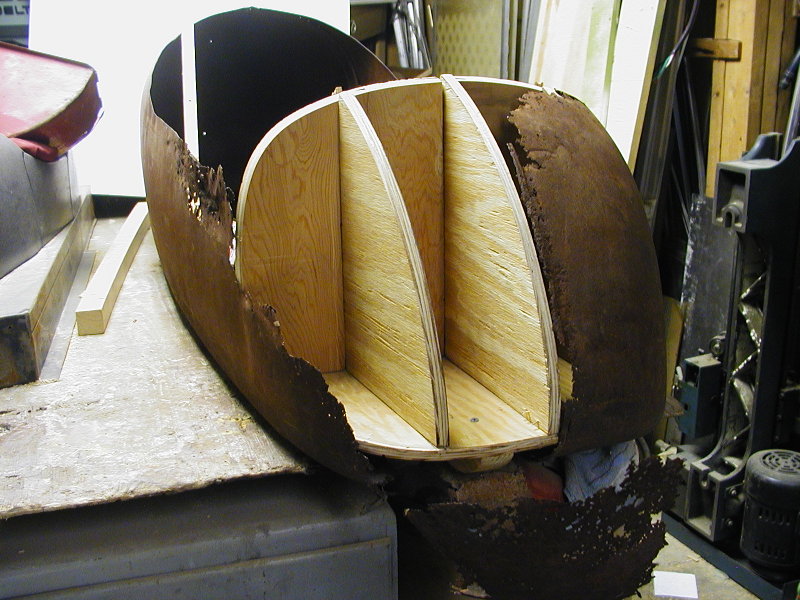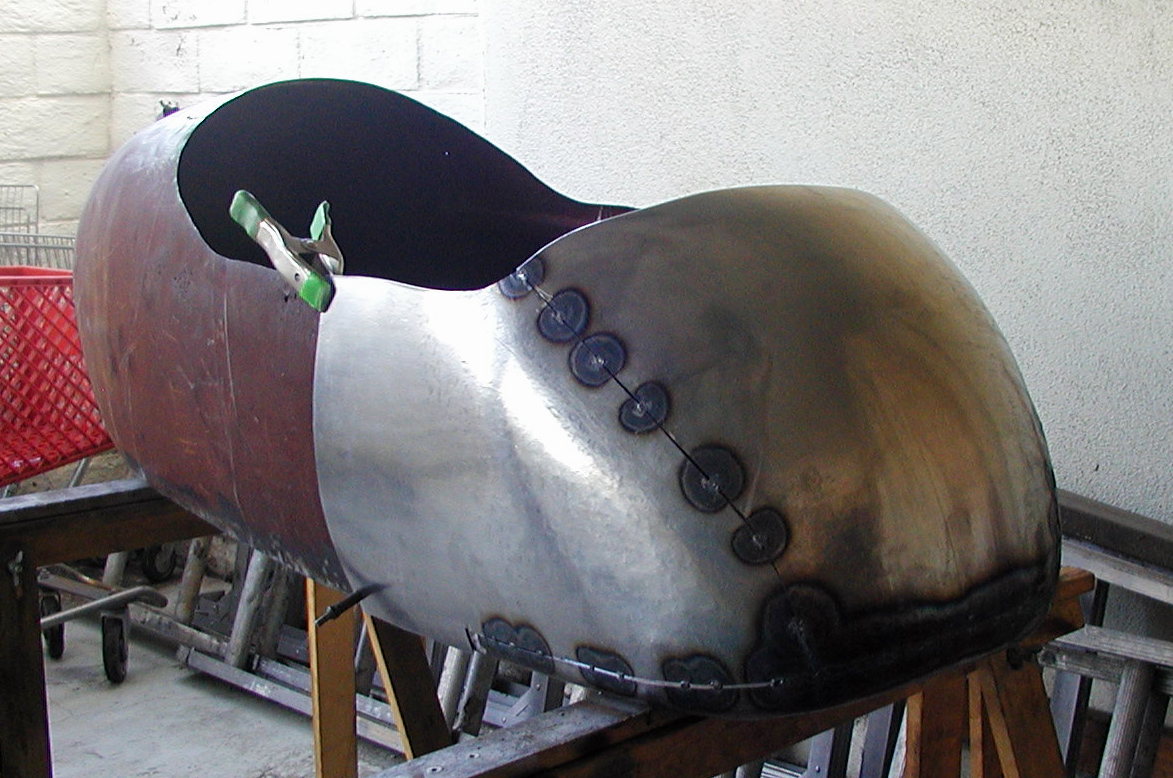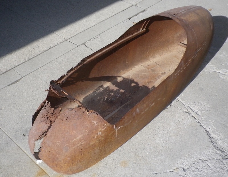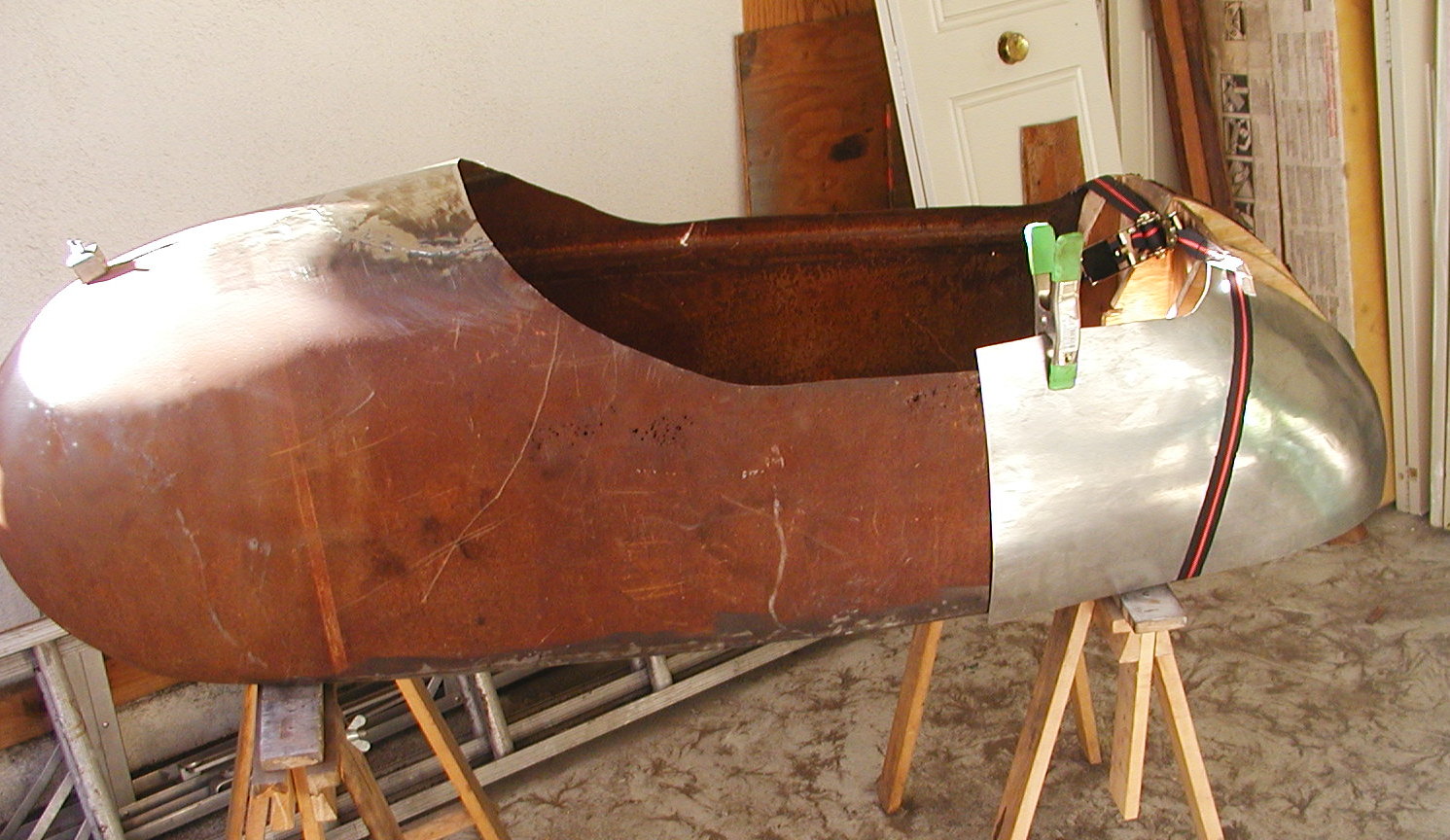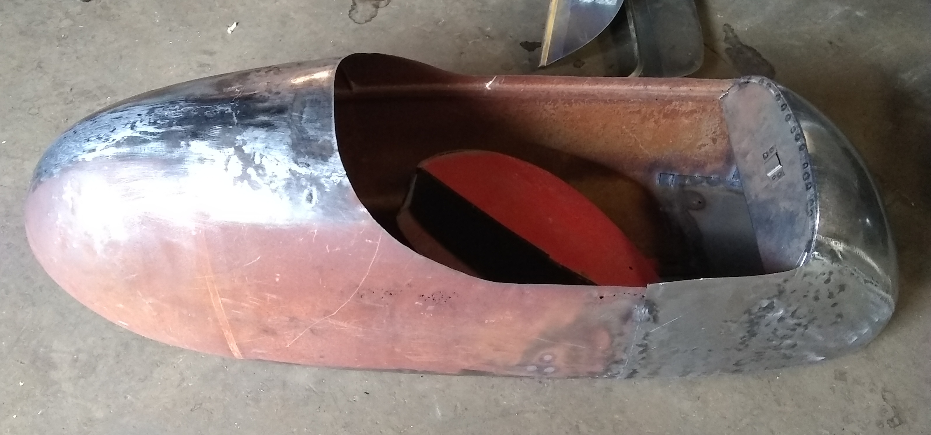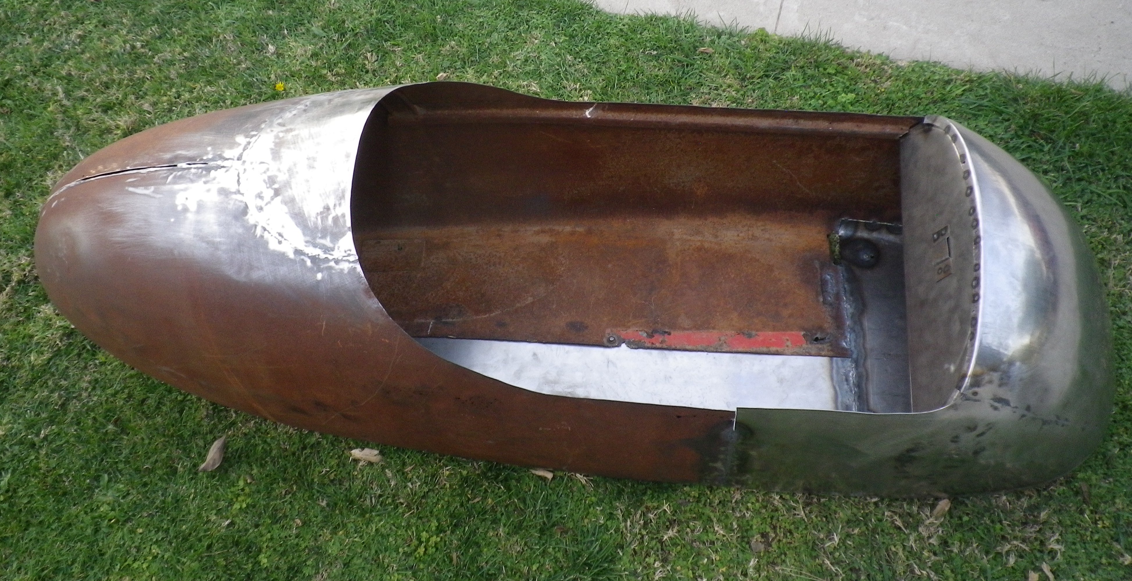 A Tale of Two Vespa Sidecars: An Allstate Cruisaire sidecar and an Aluminum Replica May 1, 1958 - April 15, 2020 May 30, 2019: 61 years after first driving the Vespa and sidecar in Chicago, it passed a test drive on our local Burbank streets. We later toasted with Proseco! A few weeks later, Shannon became the first sidecar passenger since 1960! The above photos were taken in Chicago, about 1959. Bob is on the Vespa, with a wooden delivery box on the sidecar chassis. The location is our all concrete "backyard" behind the family apartment at 4606 N. Kedzie Avenue. No early photos of the metal "Allstate Cruisaire" sidecar body with the Vespa! I bought the Vespa from the Manor News Agency on May 1, 1958 specifically to deliver newspapers. I had started delivering 50 copies of the Chicago Daily News about four years earlier on my bike with a single afternoon route on Wilson and Eastwood avenues, but planned to shift to morning deliveries before starting high school. Illinois had recently changed a law to allow scooters under 5 hp to be driven at age 14, so a few weeks after purchase, I add two routes of the Chicago Tribune and Sun-Times in the (very) early morning. The Vespa allowed me to deliver "tons" of newspapers before I moved on to another job. The sidecar was made from steel and had an Allstate identity plate I later learned it's an "Allstate Cruisaire Companion". The Vespa stayed in Chicago until 1996, first in the garage adjoining our backyard on Kedzie Ave. and later at my brother Dan's house on Kilpatrick Ave. Sometimes inside, sometimes outside. The sidecar body and frame at Dan's house on Kilpatrick Ave, Chicago, in 1991 The Vespa and both sidecars were originally light green, as bought May 1, 1958. After a few years, I painted the Allstate sidecar and the Vespa red, but the seat cushions in the sidecar remained dark green. The Illinois Vespa title shows serial number "VLIM 60834, but this doesn't match any of the factory listed numbers, so a correction was expected. Dan brought the Vespa to Arizona, then to California from Chicago in August, 1996. I met Dan in Lake Havasu AZ at Bruce and Colin Kimmins' shop. Because the Allstate sidecar had been left outside in Chicago for many years, it was very rusty. Bruce decided to build an aluminum replica body rather than work on the rusty steel. Within a few days, Bruce had fabricated half of the sidecar shell. The original sidecar body and frame were left with Bruce.An aluminum "replica" over the original rusty steel sidecar, August 1996. So what happened to the Allstate sidecar, left with Bruce Kimmins in Lake Havasu in August 1996? Not much! In October 2017 we rented a van, drove to Bruce's shop in Lake Havasu and picked up both sidecars. The aluminum replica was about 80-90% complete.The aluminum replica sidecar, retrieved from Lake Havasu City, AZ Packard restorer and builder Jerry Miscevich introduced me to Tim Todd, the metal worker who fabricated a steel body for Jerry's 1929 Packard Speedster. Jerry's great car was featured on Jay's Leno's Garage. Tim looked at both sidecars and agreed the Allstate sidecar could be saved. Much later, Tim also completed the aluminum replica.After welding and finish work by Tim Todd, November 2019: The replica sidecar, after sanding and polishing, April 2020: The rusty Allstate Cruisaire sidecar, October 2017: Tim took the original rusty steel sidecar to his shop on December 4, 2017 and within a few days had built patterns to shape the very rusty rear part of the sidecar.