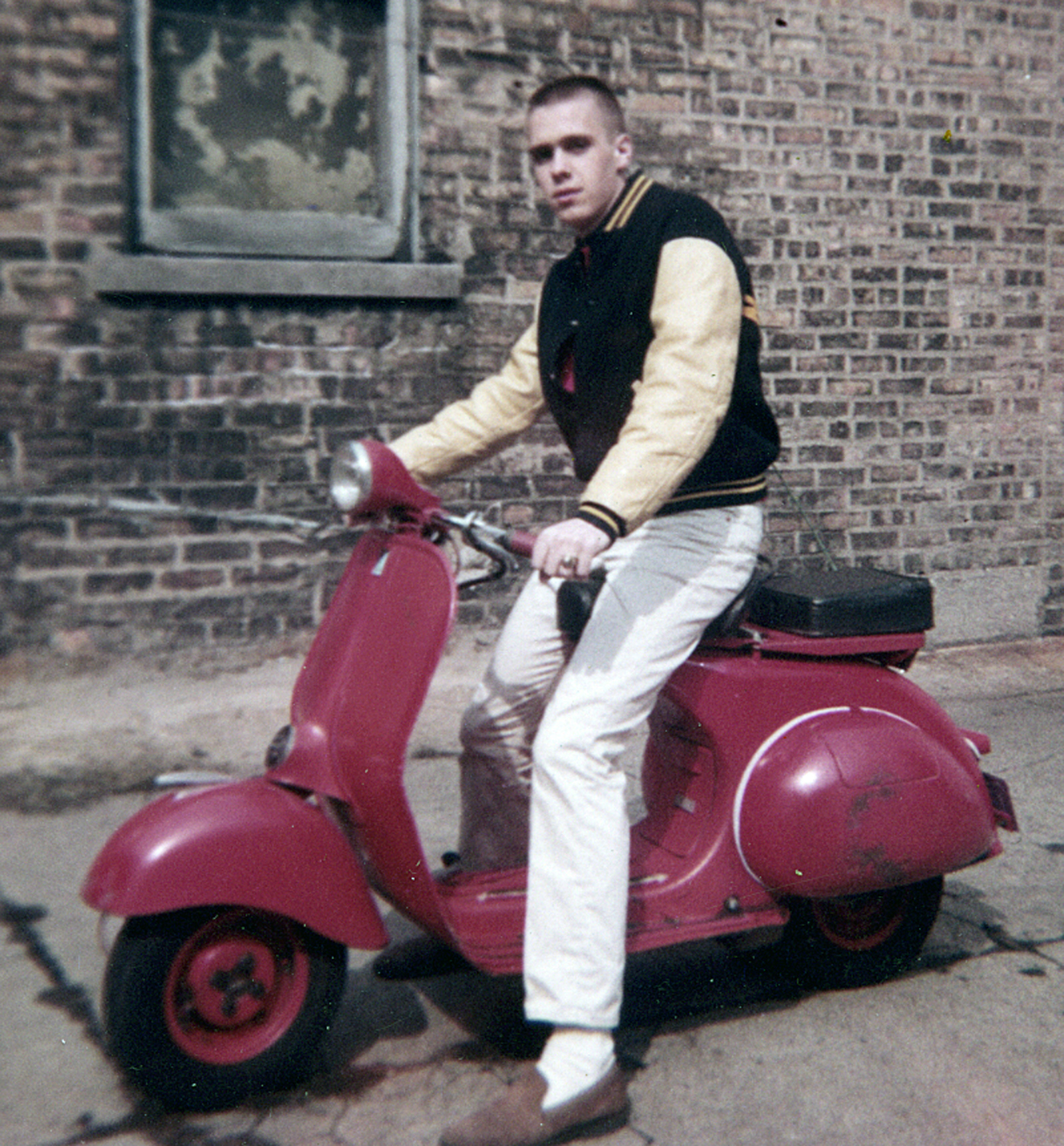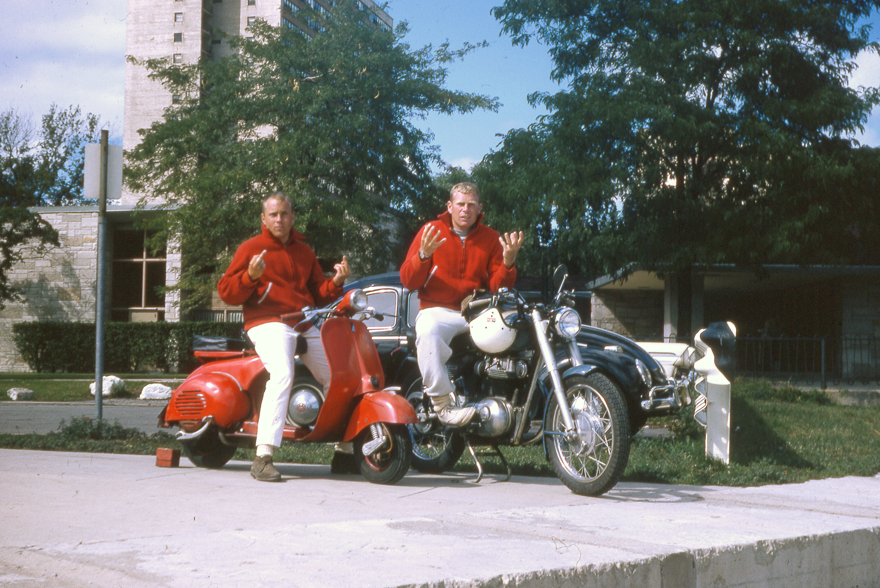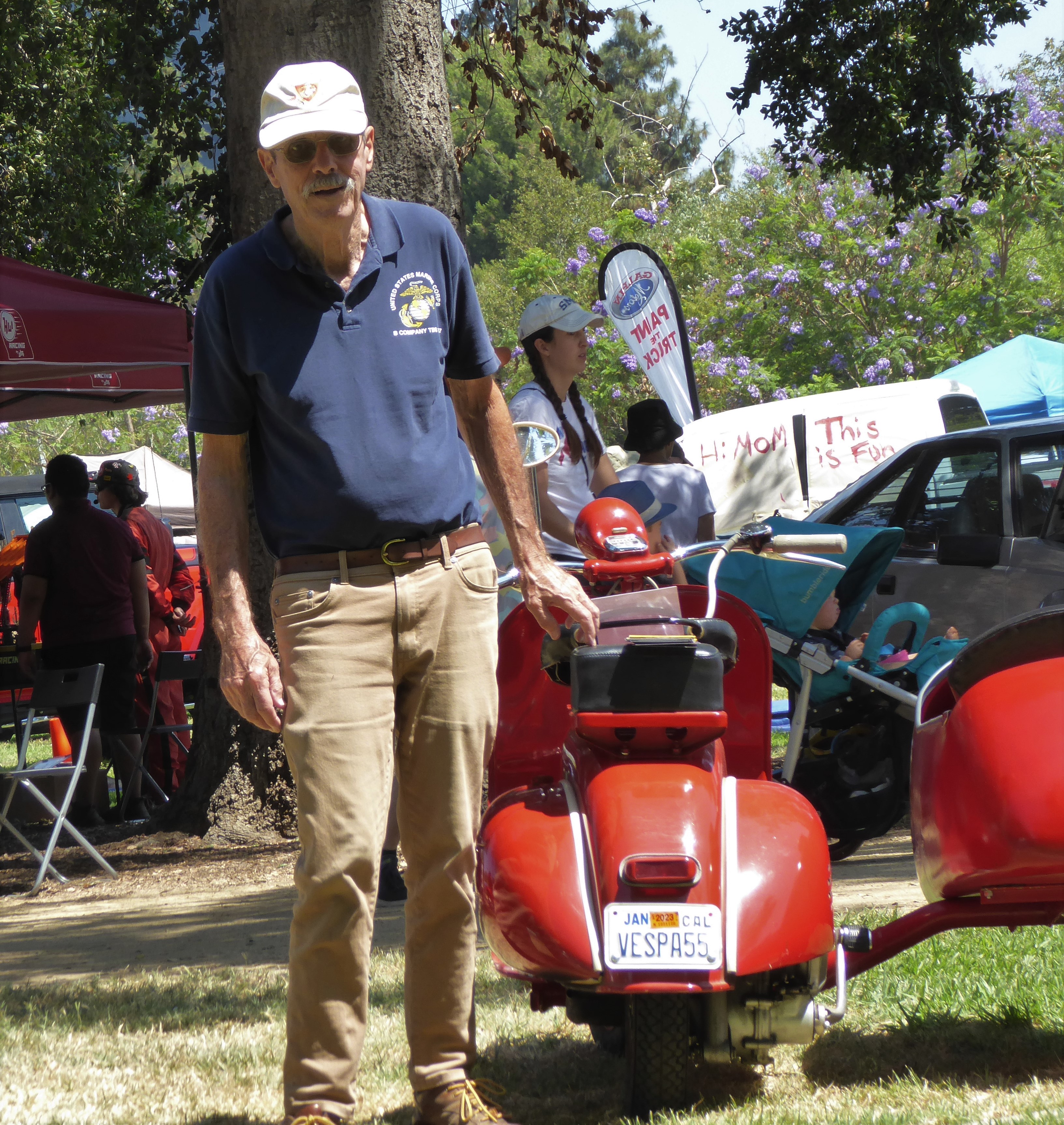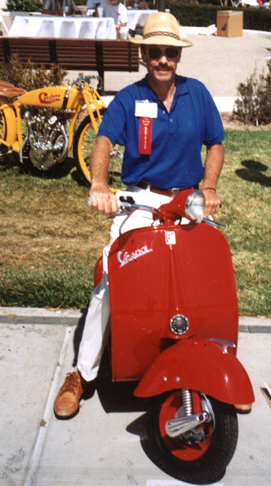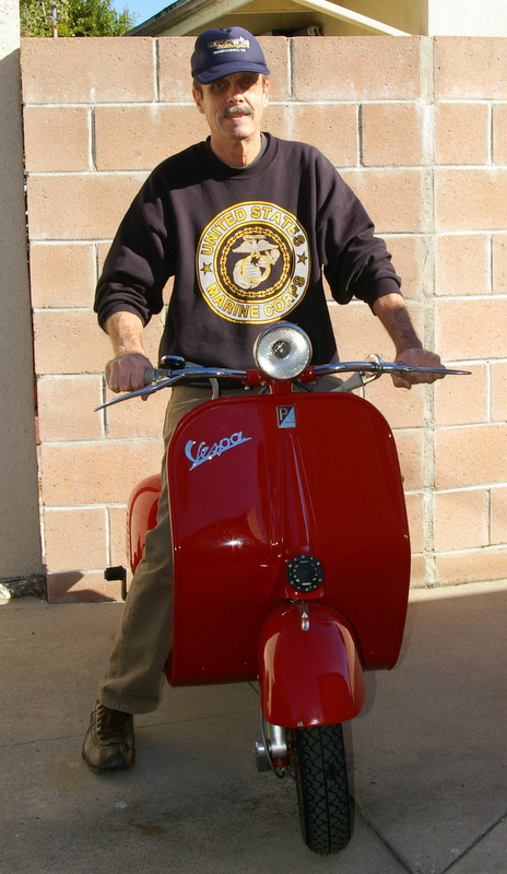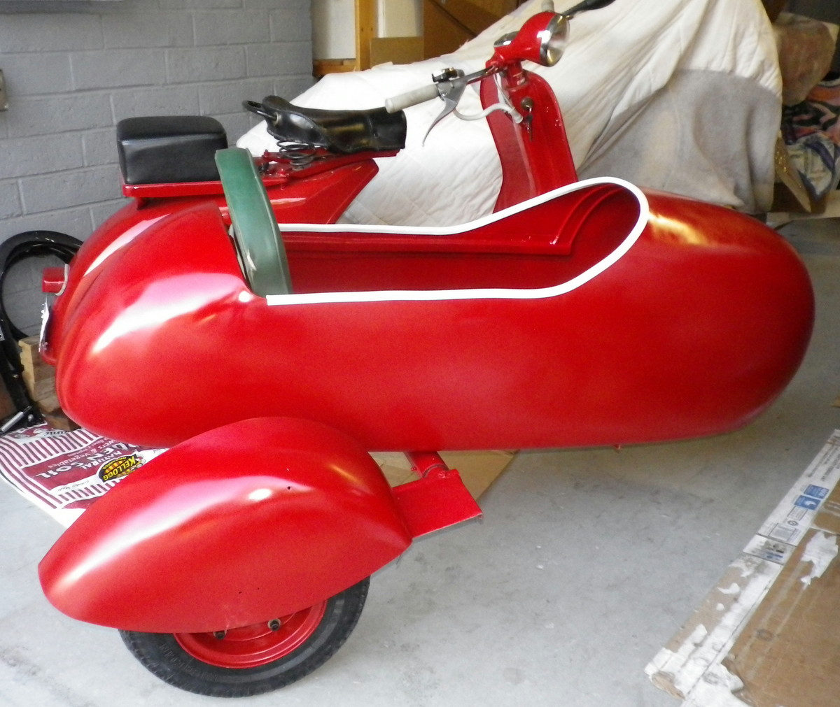 Bob's 1955 Vespa, with an Allstate sidecar 1958-2023 Vespa Celebrates 75th Anniversary! May 30, 2019 status: The Vespa and the sidecar are complete! At the Road Kings Car Show - June 11, 2023: At the Road Kings Car Show - June 12, 2022: Look for us again at the next Road King's show at Johnny Carson Park! The Restoration is Finally Complete! May 30, 2019: 61 years after I first drove the Vespa and sidecar in Chicago, I took it on our local Burbank streets. A few weeks later, Shannon became the first sidecar passenger since 1960 - we later toasted with Prosecco! Where it all began: The photos above were taken in Chicago, about 1959. Bob is on the Vespa, with a wooden delivery box on the sidecar chassis. The location is our all concrete "backyard" behind the family apartment at 4606 N. Kedzie Avenue. I have not found any early photos of the metal "Allstate Cruisaire" sidecar body with the Vespa. I bought the Vespa from the Manor News Agency on May 1, 1958 specifically to deliver newspapers. I had started delivering 50 copies of the Chicago Daily News about four years earlier on my bike with a single afternoon route on Wilson and Eastwood avenues, but planned to shift to morning deliveries before starting high school. Illinois had recently changed a law to allow scooters under 5 hp to be driven at age 14, so a few weeks after purchase, I add two routes of the Chicago Tribune and Sun-Times in the (very) early morning. The Vespa allowed me to deliver "tons" of newspapers before I moved on to another job. The sidecar was detached around 1960 and the Vespa took me to several jobs, including my summer lifeguard work at the Hollywood-Ardmore Beach. Two other Hollywood-Ardmore lifeguards at Thorndale Beach - Marv is on my Vespa! Close Encounters of the Ferrari Kind One commute to a summer job was very memorable. I had made a left turn from Foster Ave to California Ave, near Swedish Covenant hospital when a pulled up along a pale gold Ferrari with "flying butresses" extending from the roof to the trunk. It took many years to ID this car - clearly it was the "Ingrid Bergman Ferrari 375 MM", S/N 0456AM. What year was this, who was the owner and why was it in Chicago? The Vespa then "went to the university" for a year, in 1965-66.Visiting home from school in South Bend, 1963 The sidecar was made from steel and had an Allstate identity plate I later learned it's an "Allstate Cruisaire Companion". The Vespa stayed in Chicago until 1996, first in the garage adjoining our backyard on Kedzie Ave. and later at my brother Dan's house on Kilpatrick Ave. Sometimes inside, sometimes outside. The sidecar body and frame at Dan's house on Kilpatrick Ave, Chicago, in 1991 The Vespa and both sidecars were originally light green, as bought May 1, 1958. After a few years, I painted the Allstate sidecar and the Vespa red, but the seat cushions in the sidecar remained dark green. The Illinois Vespa title shows serial number "VLIM 60834, but this doesn't match any of the factory listed numbers, so a correction was expected. I last used the Vespa at Notre Dame in 1966, after taking it to South Bend in the trunk of a 1965 GTO! I graduated from Notre Dame in 1966 and began five years of active duty in the Marine Corps - in Virginia, Florida, North Carolina, Vietnam (Chu Lai) and finally Honolulu. I owned several "interesting" cars during this time but did not forget the Vespa. In 1992-3, my brother Dan restored the Vespa scooter in Chicago for his TV motorcycle show. Unfortunately, a well-known classic Vespa dealer in Chicago returned an incorrect, different engine to Dan. The engine he installed was a 125 cc engine from a "Sears Allstate" scooter. It was also defective - rough and very smoky. Dan brought the Vespa to Arizona, then to California from Chicago in August, 1996. I met Dan in Lake Havasu AZ at Bruce and Colin Kimmins' shop where they had my Frazer Nash for restoration (see FrazerNash-USA.com). Because the Allstate sidecar had been left outside in Chicago for many years, it was very rusty. Bruce decided to build an aluminum replica body rather than work on the rusty steel. Within a few days, Bruce had fabricated half of the sidecar shell. The original sidecar body and its chassis were left with Bruce. An aluminum "replica" over the original rusty steel sidecar, August 1996. After the Vespa came to my Burbank Maple street apartment garage, a few weeks later I loaded it into a U-Haul trailer to take it to the Santa Barbara Concours on September 21, 1996. / Santa Barbara Concours d'Elegance, September 21, 1996, exactly the same date as Piaggio was celebrating its 50th anniversary. The driver is the same as in the photos above! After the Concours, I took the Vespa to two scooter shops in Los Angeles to have a correct Vespa 150 engine installed. Locating an engine and getting it installed took more than 4 years! Kristian Storli, at Bar Italia Classics, did great work on the entire scooter and delivered it to our garage in Burbank on January 5, 2010. The Vespa did not have a "proper" kickstand and was not registered in California. Registration was a challenge! Although I had an 1959 Illinois registration in my father's name, the serial number was probably wrong because it didn't match any of the published lists. I scratched the paint off the serial number in mid-December 2009 and thought I found the right number. I first went to the Auto Club with California DMV forms from the Internet, but was told I had to get a replacement Illinois title. I made that application on January 28 with much documentation. The Illinois Secretary of State responded, stating that there were no title records from that time. I next went to the Glendale DMV with my paperwork, hoping they would use the uncovered serial number and issue a title. The inspection clerk didn't have much patience and marked the form as "not legible", but I did get a temporary registration until April 30, 2010. On April 12, I took the Vespa to the California Highway P